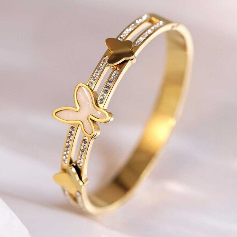 Trendy Gold Plated Heart Shaped Four Leaf Design Bracelet
