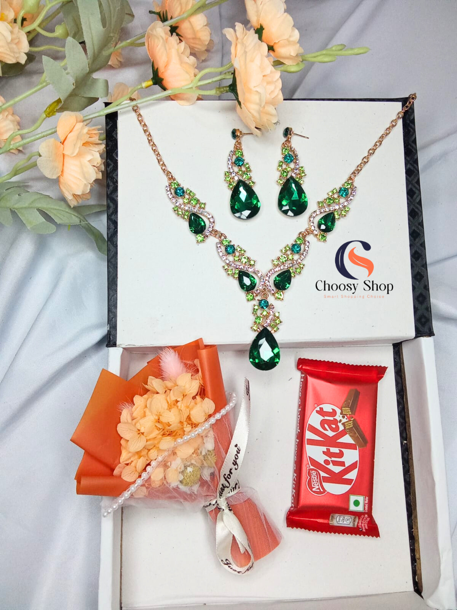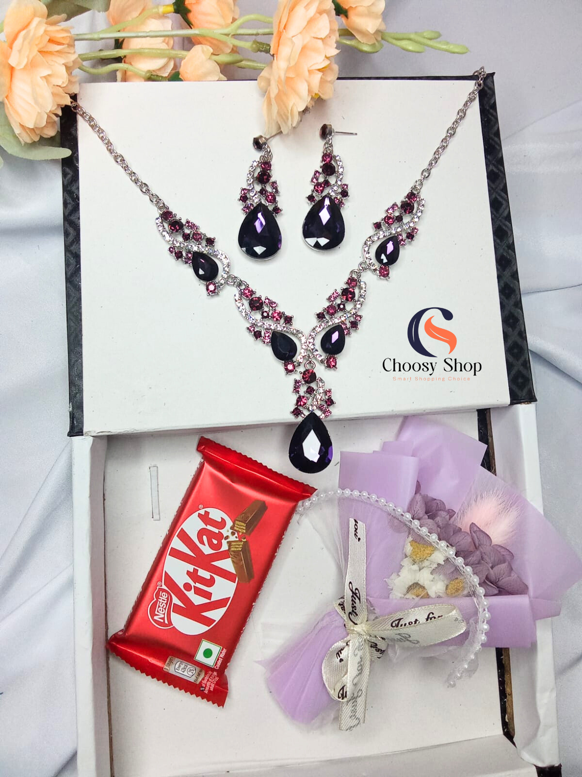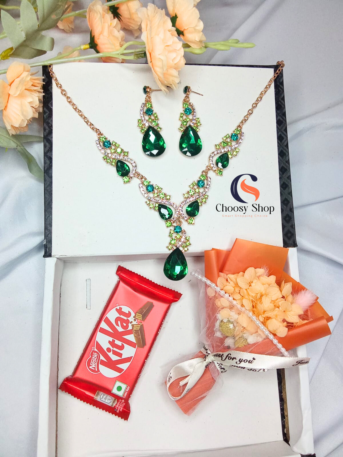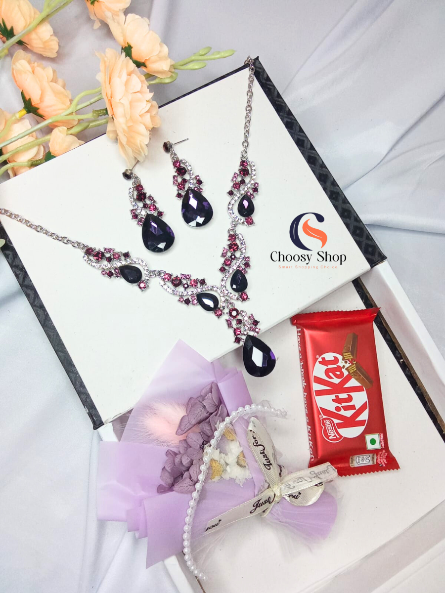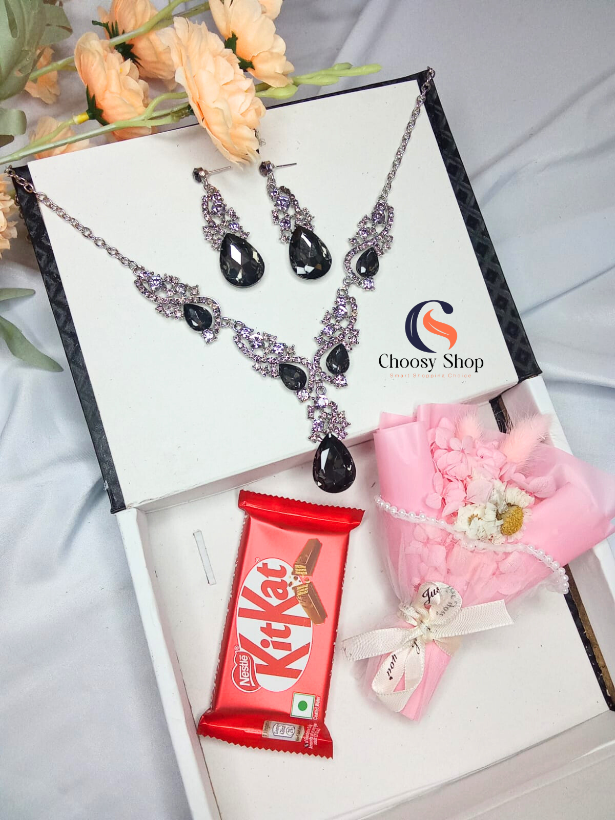 Vintage Crystal Necklace Earrings Set with Flower & Kitkat