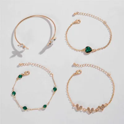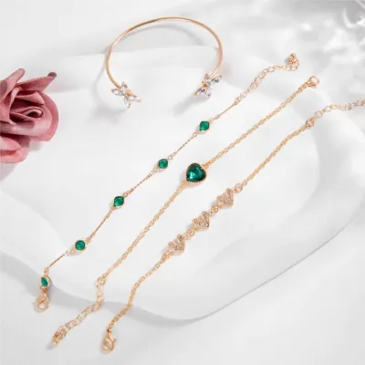Vintage Flower Design Heart Shaped Bracelet ( 4 Pcs )