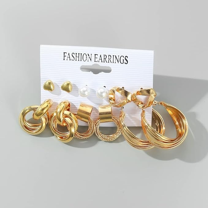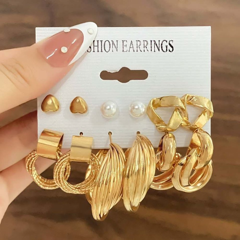 Vintage Gold Design Pearl Stud Earrings ( 6 Pairs )
