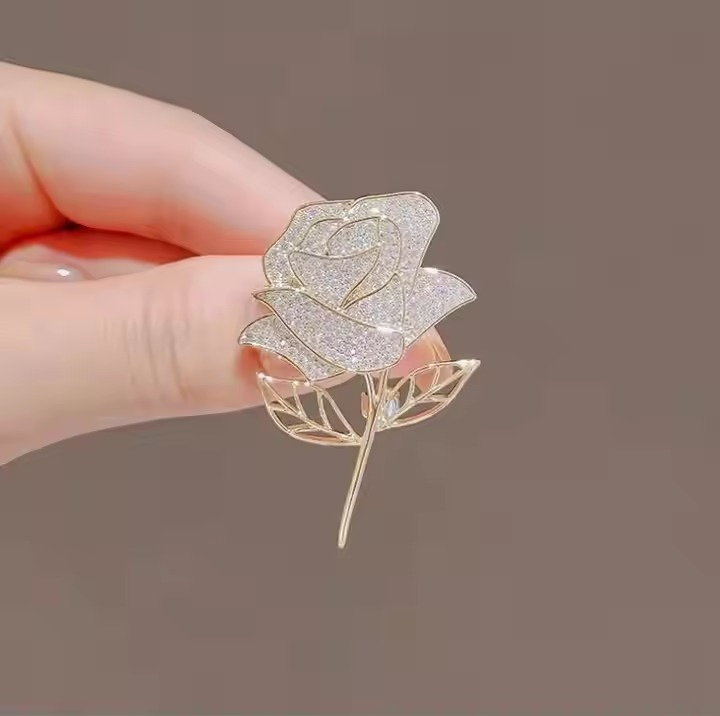 Vintage Rhinestone Rose Design Hijab Brooch/Pin