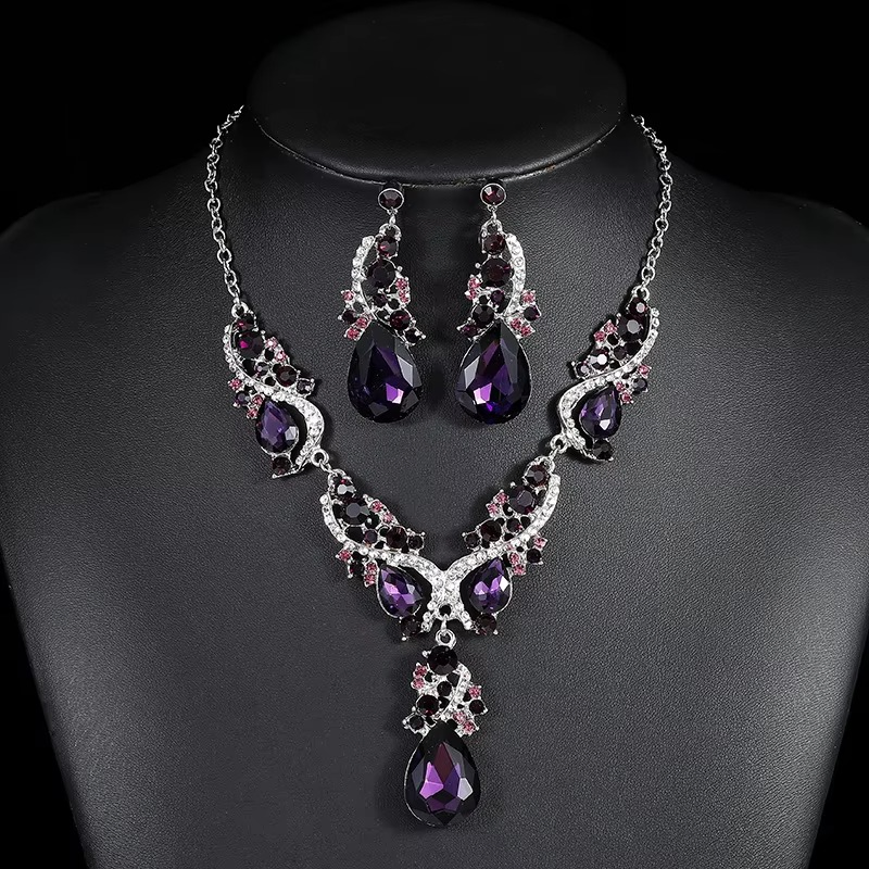 Vintage Water Drop Crystal Necklace Earrings Shining Jewelry Set