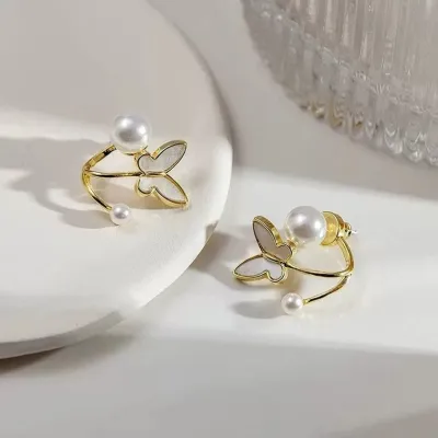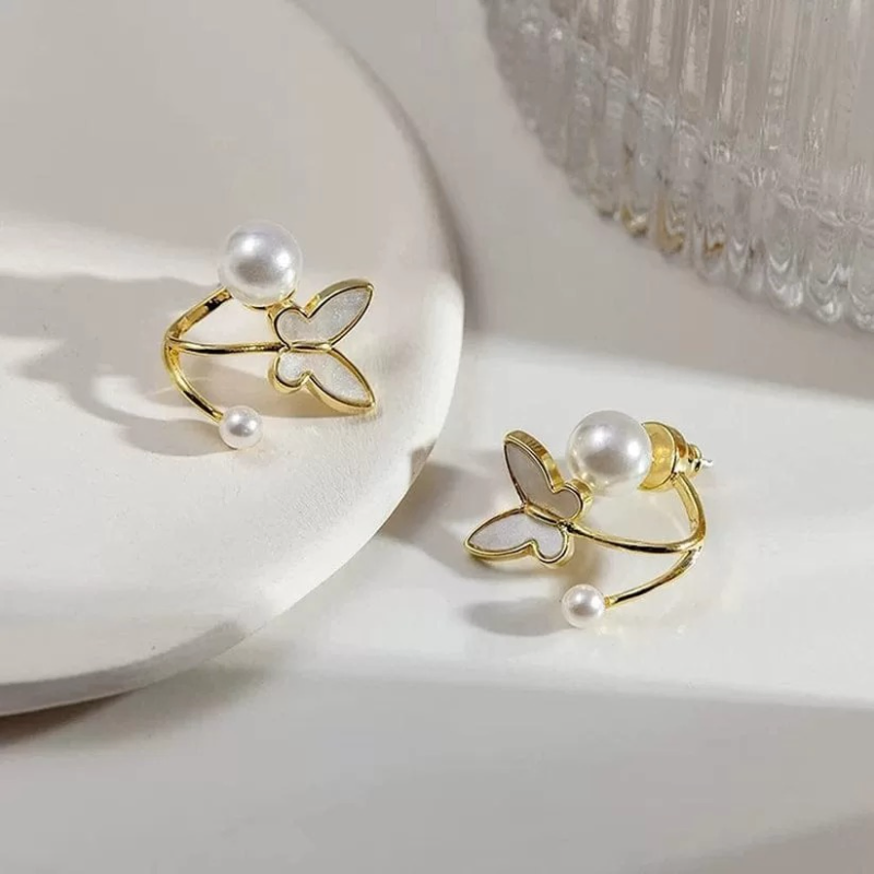 White Pearl Butterfly Stud Earrings