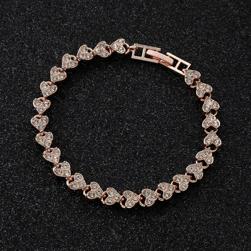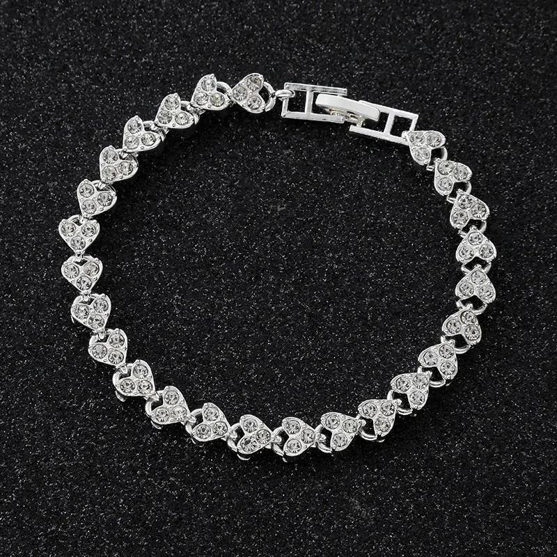 Women Fashion Roman Style Zircon Crystal Heart Bracelet