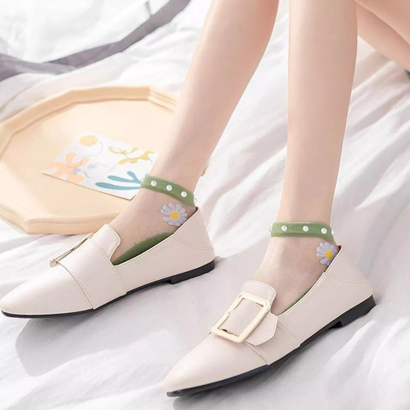 Women's Transparent Pearl Daisy Lace Socks (2 pair)
